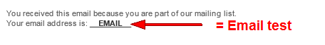To differentiate a "test mailing" from a real mailing", look at the bottom of the email received. If you can see "Your email address is : __Email__" in the footer, it is a mailing test!