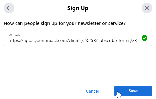 6. Click "Save" and a Sign up button will now appears on your Facebook page!