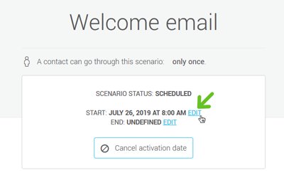 3. Click the "Cancel activation date" button and click "Yes" to confirm. The scenario will then go back to the "Under construction" status.