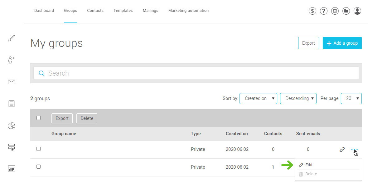 Note: A group linked to a subscription form will become secure. Therefore, it is impossible for you to inadvertently delete the group(s) linked to your form.