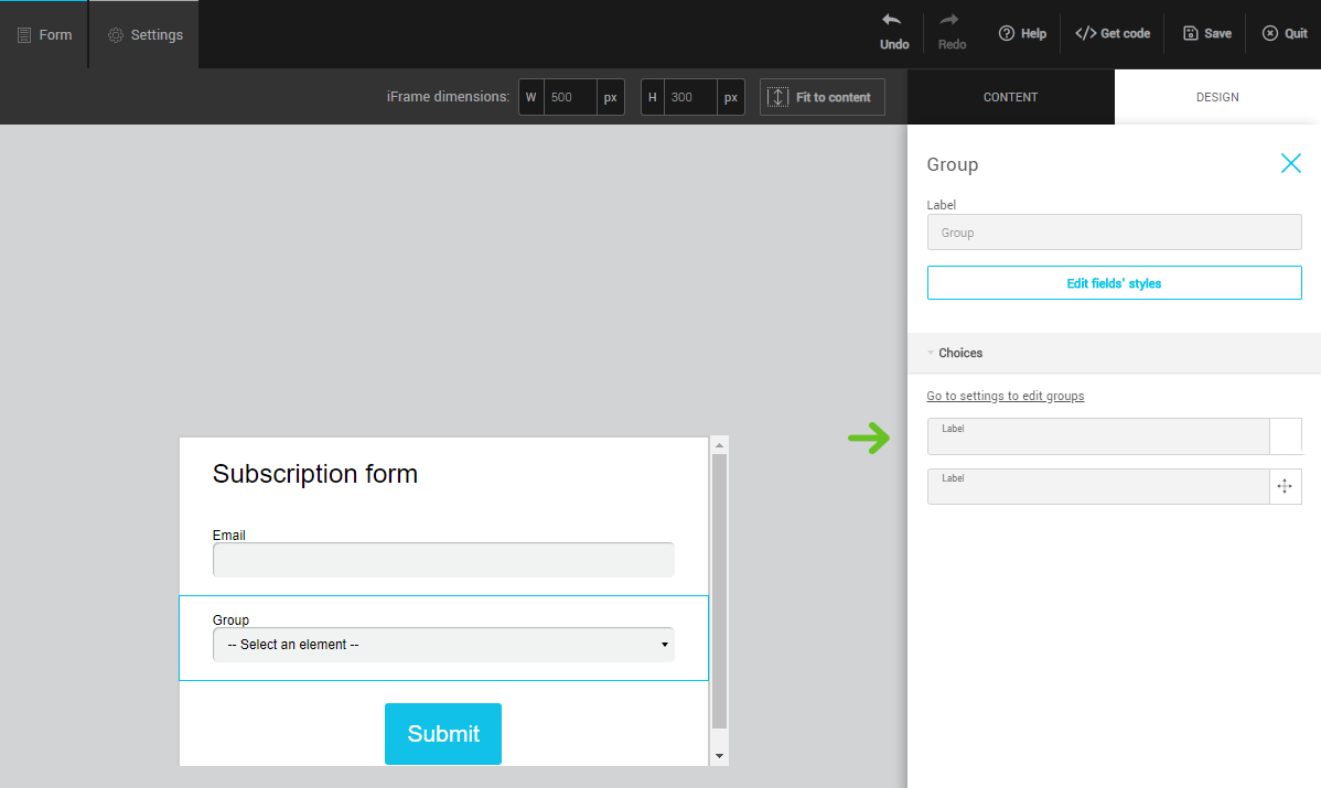 If you choose the multiple choice or single selection subscription type, your groups will be visible in the form.