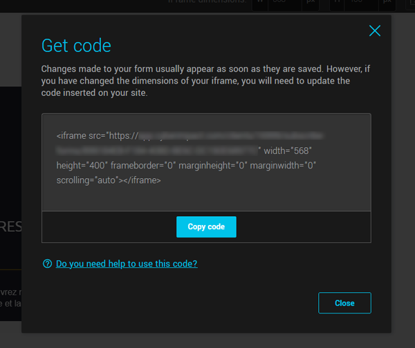 Enter your iFrame code in the HTML section. The form will appear below in the preview. Fill it out to see if it works.