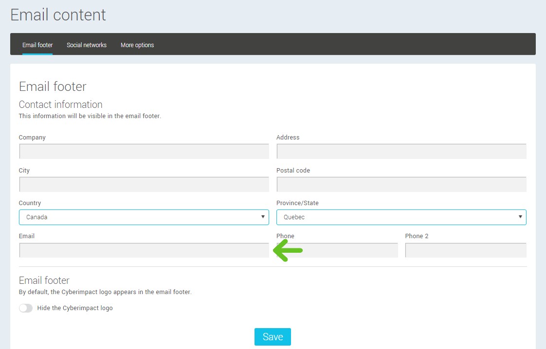 Note: the return address for subscription confirmation emails is, by default, the address you entered in the Email field of your Email footer section (to access it, hover your mouse over the gear icon at the top right of your account, and click Email footer).