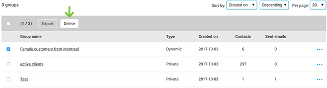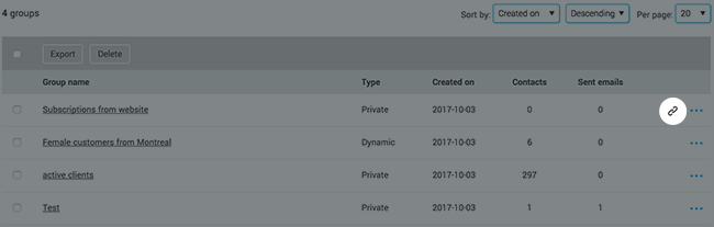 When a group is linked to a subscription form or a marketing automation scenario, you won't be able to delete it. Before deleting it, you must change the group(s) linked to your subscription form, or remove its association with your scenario.