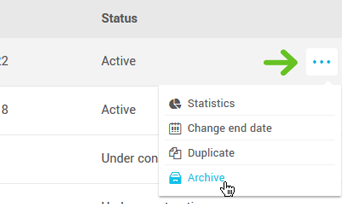 - Clink on the action menu at the right of the survey and select "Edit the end date".