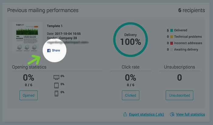 Note: To share your mailing on Facebook, the delivery must have already started.