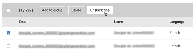 Pro tip: To make sure the number of contacts you're about to unsubscribe is right, you can validate the number in parenthesis on the right of the checkbox.