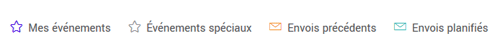 - vos événements : ils sont identifiés par l'icône d'une étoile violette. Il s'agit des événements que vous avez vous-mêmes ajoutés. Tous les utilisateurs de votre compte pourront les voir afin de faciliter votre planification en équipe.