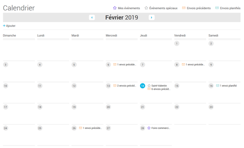L'outil de Calendrier que vous retrouverez dans votre compte a été conçu pour vous offrir une vue globale de vos envois passés et de ceux à venir. À partir du calendrier, vous pourrez non seulement voir ce que vous aviez envoyé à pareille date durant les années précédentes, mais vous pourrez également accéder rapidement aux statistiques de ces envois et réutiliser leur contenu, au besoin. Comparez vos stratégies marketing des années précédentes vous permettra de vous inspirer de vos bons comme de vos moins bons coups pour améliorer vos prochains envois de courriels.