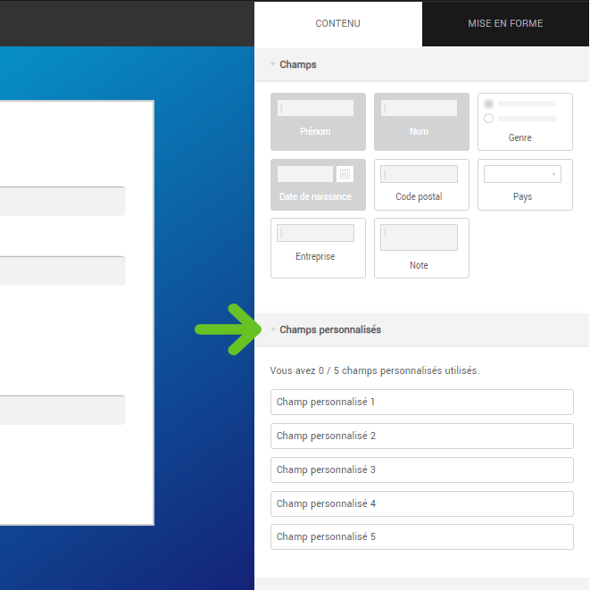 Les champs personnalisés sont des champs que vous pouvez utiliser pour enregistrer des informations supplémentaires dans la fiche de vos contacts.