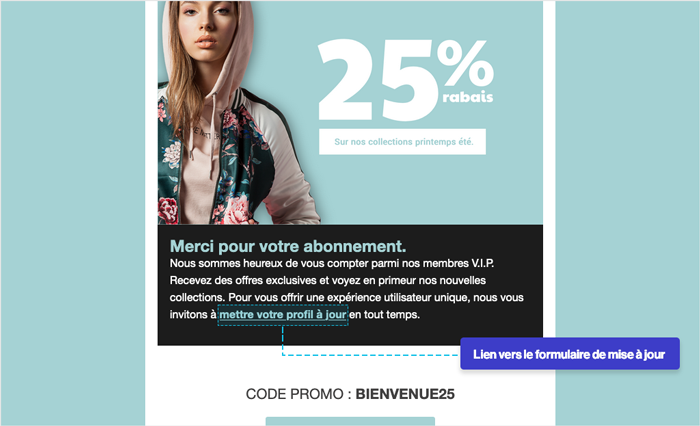 Ajouter un lien de mise à jour du profil dans un modèle ou un envoi