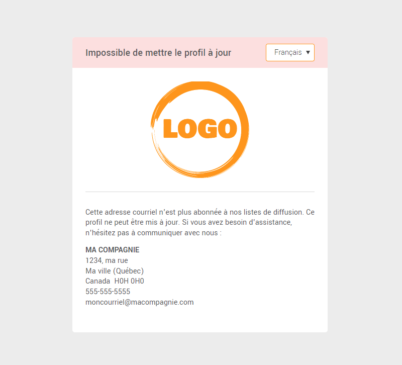 Le processus et les messages pour mettre à jour son profil sont dans la même langue que le formulaire et non, dans la langue de l’envoi.