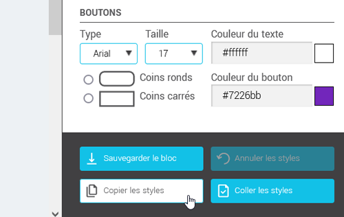 Il y a deux façons de modifier la police de vos textes. Vous pouvez modifier la police pour l'ensemble d'un bloc de texte via le panneau latéral à la droite de l'éditeur de courriel ou vous pouvez appliquer une police pour quelques mots en particulier via le bandeau d'outils situé au haut des blocs de texte.