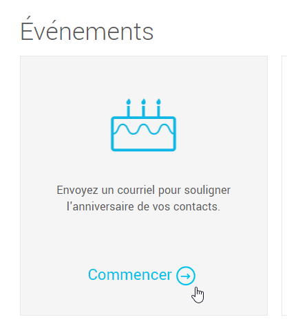 - Dans la section Événements, choisissez le scénario Envoyez un courriel pour souligner l’anniversaire de vos contacts.