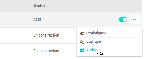 - Ouvrez le menu d'actions en cliquant sur les trois points situés à la droite du scénario à archiver.