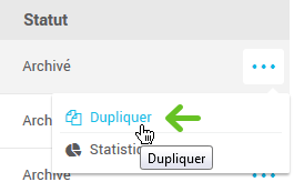 - Cliquez sur les trois points à la droite du scénario pour ouvrir le menu d'actions et choisissez l'option "Dupliquer".