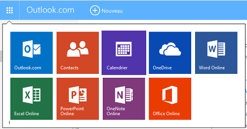 - Cliquez sur l'icône des carrés en haut à gauche du titre "Outlook.com".