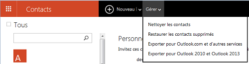 - Cliquez sur l'onglet "Gérer" et choisissez "Exporter pour Outlook.com et d'autres services".