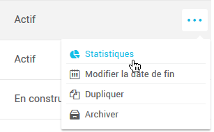 3. Cliquez sur le menu d'actions à la droite du sondage et sélectionnez "Statistiques".