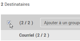 5. Pour sélectionner l'ensemble des contacts de la statistique, cochez la case dans l'entête gris au haut de la liste, à gauche du bouton "Ajouter à un groupe".
