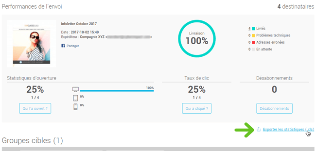 - Exporter la liste de contacts à partir d'une statistique d'envoi